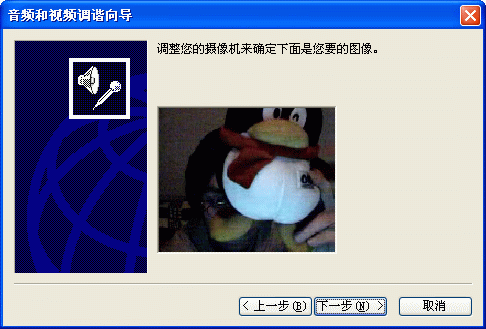 同樣,首先你應該在MSN Messenger中調節(jié)你的音頻和視頻設備。選擇工具->音頻調節(jié)向導(圖8)就會彈出“音頻和視頻調諧向導”的窗口(圖9),請根據(jù)這個向導的提示,一步一步進行測試和調節(jié)。