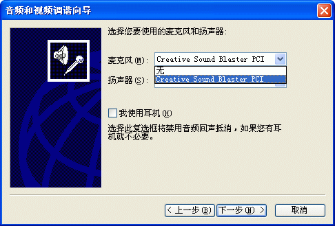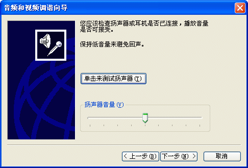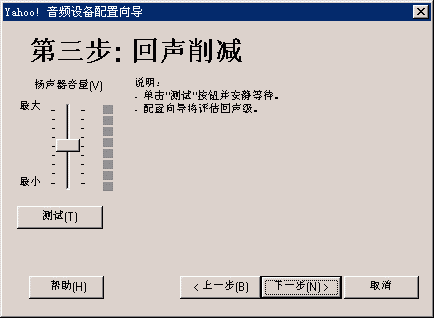 選擇幫助->音頻設備配置向導(圖2),會彈出“音頻設備配置向導”窗口(圖3),這個向導會幫助你對揚聲器、麥克風、回音、網(wǎng)絡連接等項目進行標準的測試和設置。