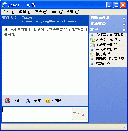 在對你的音、視頻設備檢查無誤、調試完畢后,恭喜你!你可以馬上給你的朋友打可視電話了。點擊在線好友的Yahoo! ID,就會彈出一個訊息發(fā)送框(圖6),在菜單欄下面的幾個按鈕中有“視頻”和“語音”兩個按鈕。沒錯!就是它們了,點吧!點擊“視頻”按鈕后彈出了剛才的“我的即時影像”窗口;點擊“語音”按鈕后,訊息發(fā)送框中間部分會多出一條語音顯示和控制的狀態(tài)欄。(見圖7)對方只需右鍵單擊朋友列表中你的Yahoo! ID,并選擇“觀看即時影像”即可看到你的影像并同時聽到你的聲音。OK,開始你們愉快的交流吧!:)